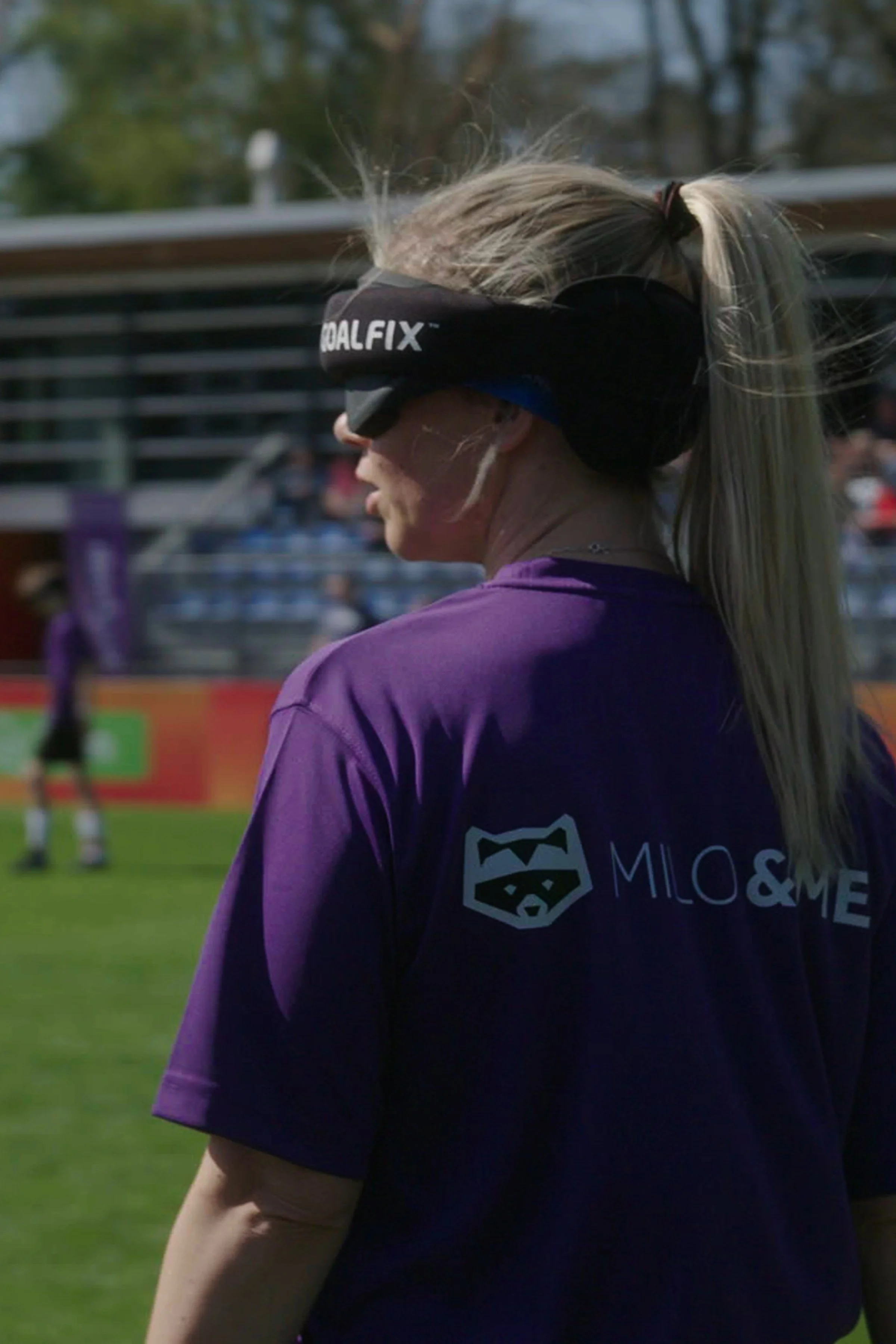 „We hadden een bril op en speelden op een kwart veld met boarding. En daar zat ’t ’m al in: in Nederland is geld hard nodig, omdat veel veldjes géén boarding hebben. Dat maakt het allemaal zo moeilijk. We speelden met vijf tegen vijf. Kleine doeltjes. Een keeper die wel kan zien en elk team met twee coaches, aan de zijkant en achter het doel. Zij geven aanwijzingen. Logisch, anders weet je niet waar je naar toe moet spelen.”